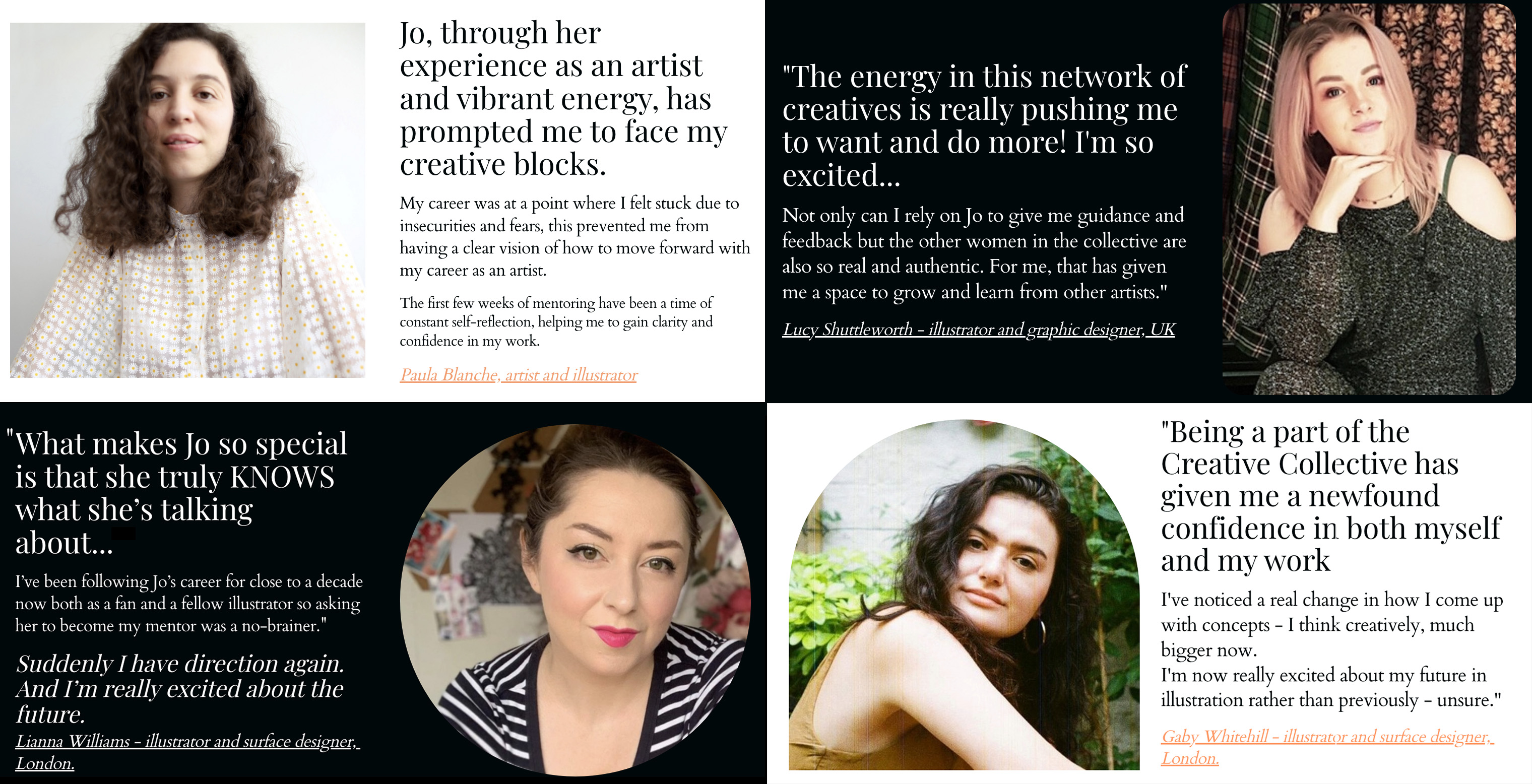 I’m really so grateful for this experience and looking forward to working more with Jo this year, as I feel it was the right move for me to move my creative career forward, and I’m sure this programme will help more people as it’s helped me!!"